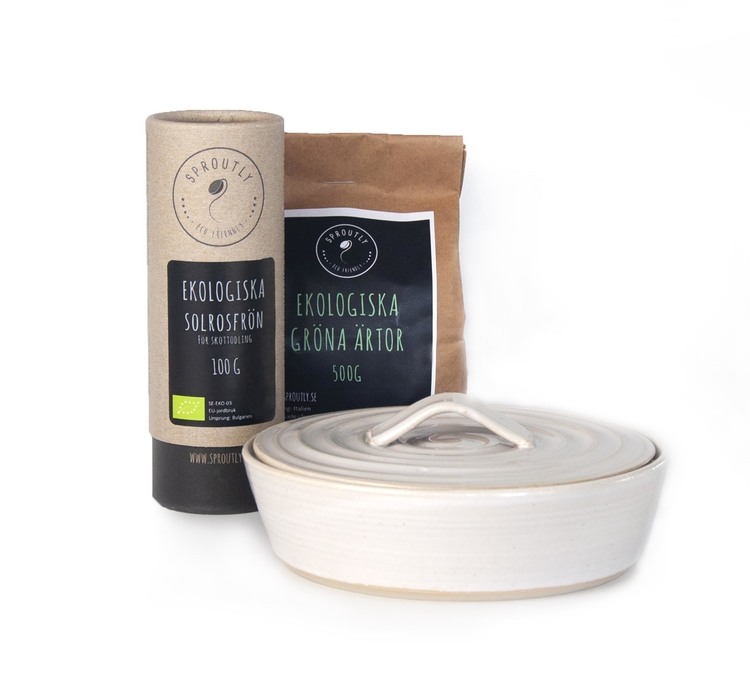 Keramisk fad fremstillet af Ellen Claesson i Sverige. Velegnet til dyrkning af skud, såsom æreskud, solsikkeskud, radiseskud og sennepsskud.