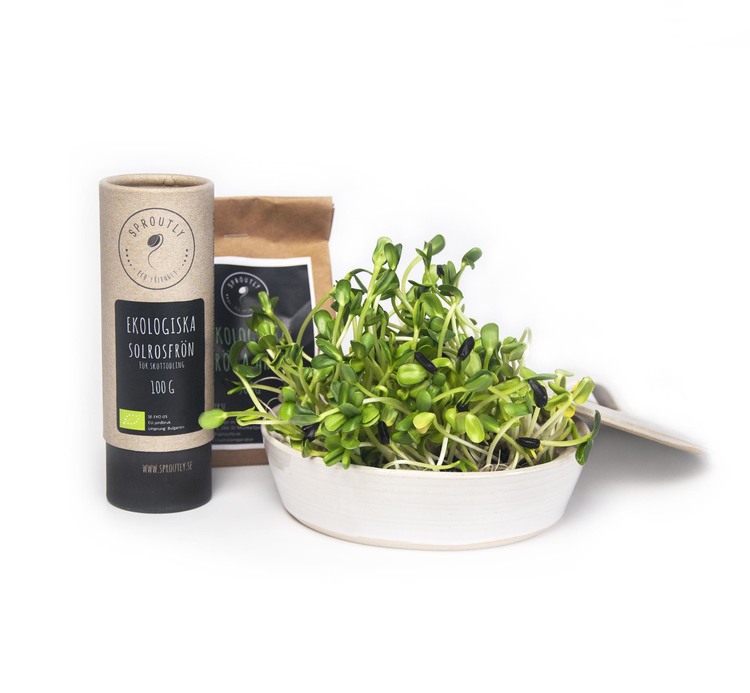 Doser 2-3 spsk frø. Vi foreslår ærter, solsikke, hvede, radise, sennep, rødkål, broccoli, raps, grønnkål, rød russisk grønkål. Hvis du vokser i jord, er bladsalat og krydderier også velegnede! Mængden af frø skal dække hele overfladen, det er vigtigt!. Rengør